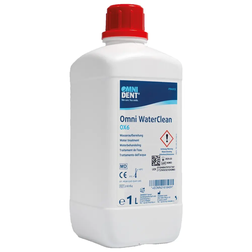 Omni WaterClean OX6 se uporablja za zmanjšanje mikrobov v sistemu oskrbe z vodo v zobozdravstvenih enotah.