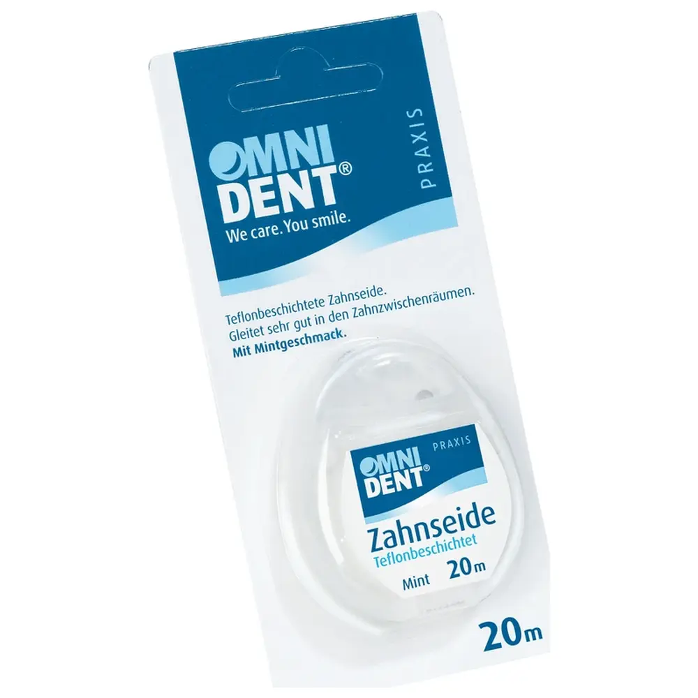 Teflonsko prevlečena zobna nitka z lahkoto drsi med zobmi, z okusom mete, 20 metrov v priročnem dozirniku.